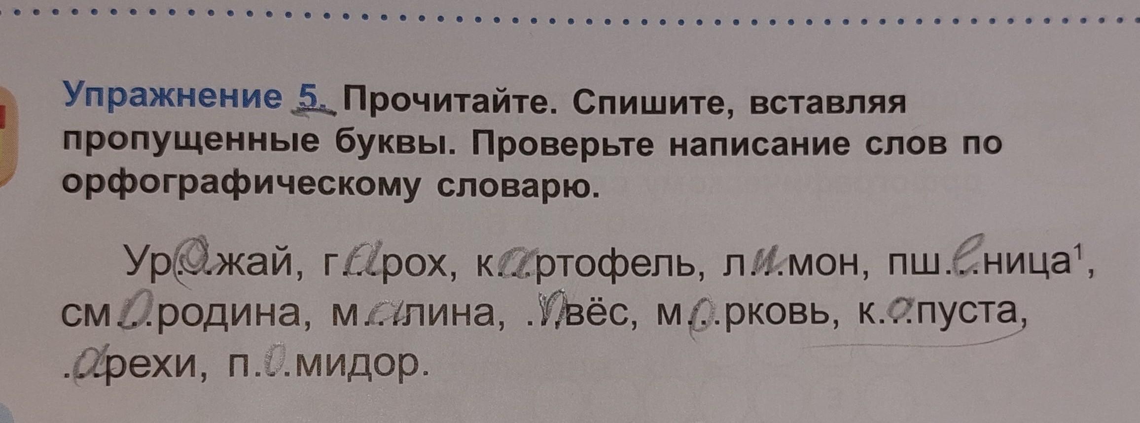 Прочитайте. Спишите, вставляя пропущенные буквы. Проверьте написание слов по орфографическому словарю.