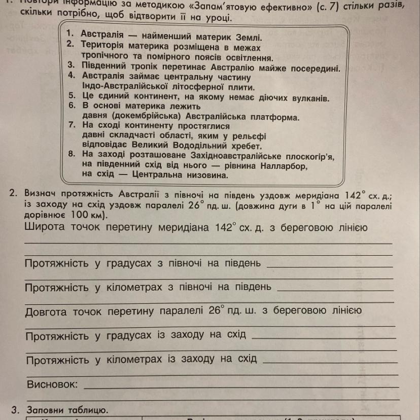 Визнач протяжність Австралії з півночі на південь уздовж меридіана 142° сх. д; із заходу на схід уздовж паралелі 26° пд. ш
