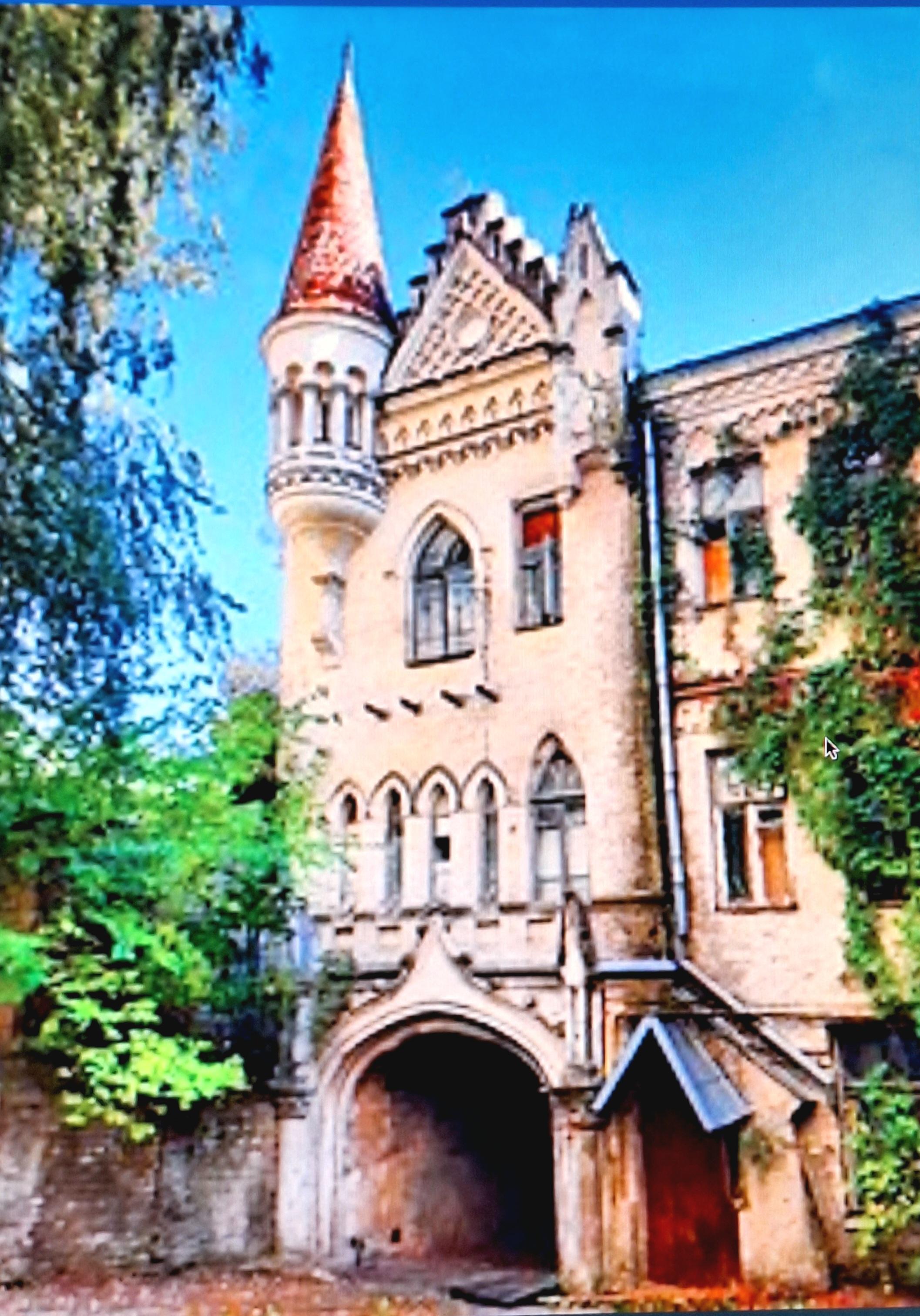 Величний замок стоїть високо на пагорбі, його стіни з червоного каменю виглядають міцними і неприступними. Він має вежу з конічним дахом і маленьким вікном, з якого можна спостерігати за всім, що відбувається навколо.