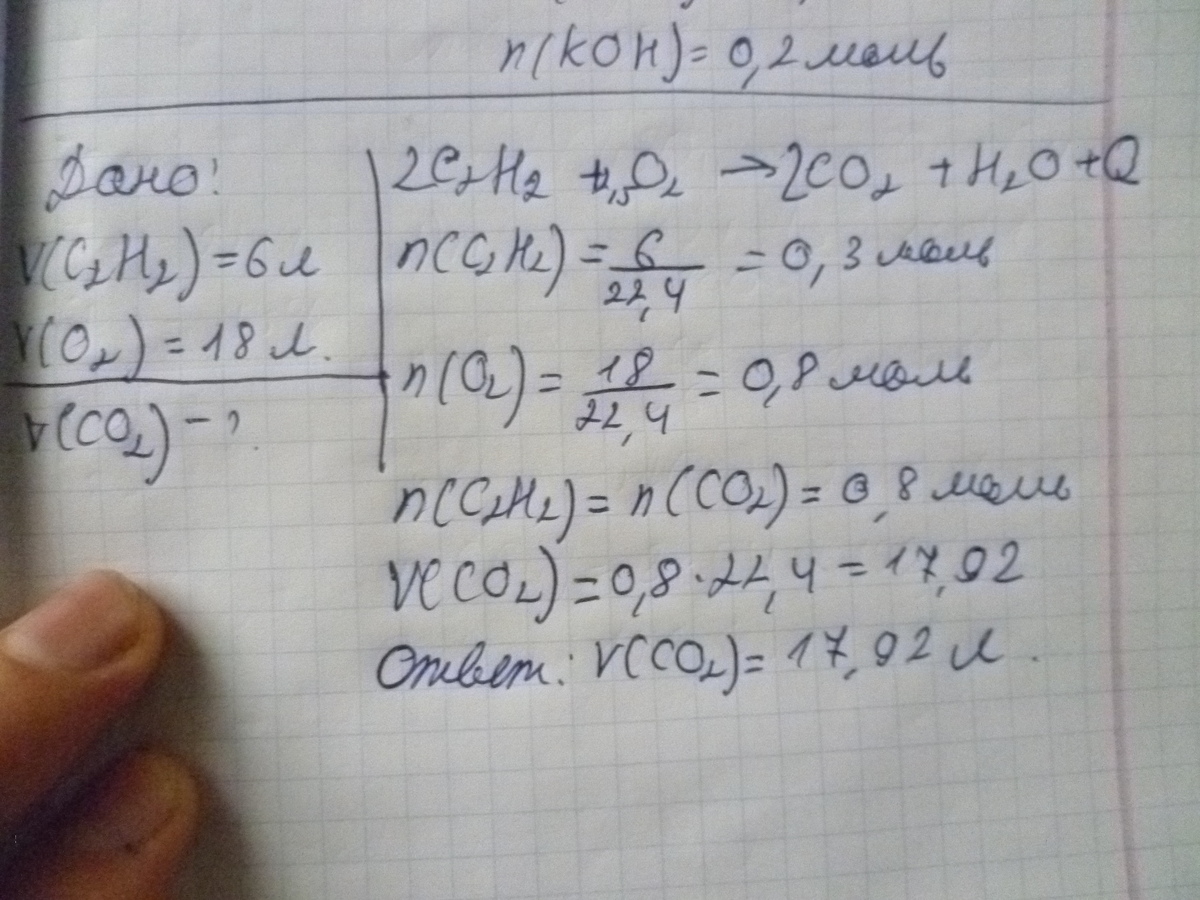 Какой объем оксида углерода (4) образуется при взаимодействии ацетилена объемом 6 л и кислорода объемом 18 л? (12 л)