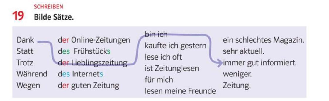 18. **Dank** der guten Zeitung **lese ich oft** meine Lieblingszeitung.