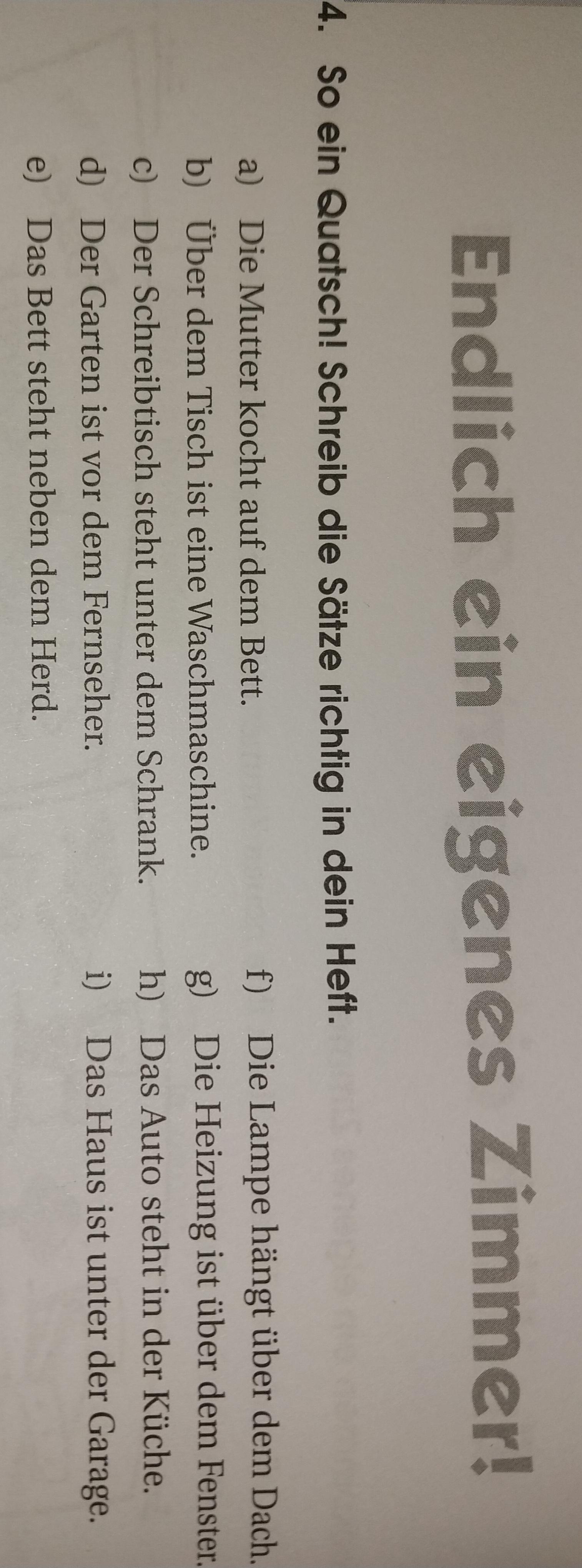 b) Über dem Tisch ist eine Lampe / Eine Lampe hängt über dem Tisch.