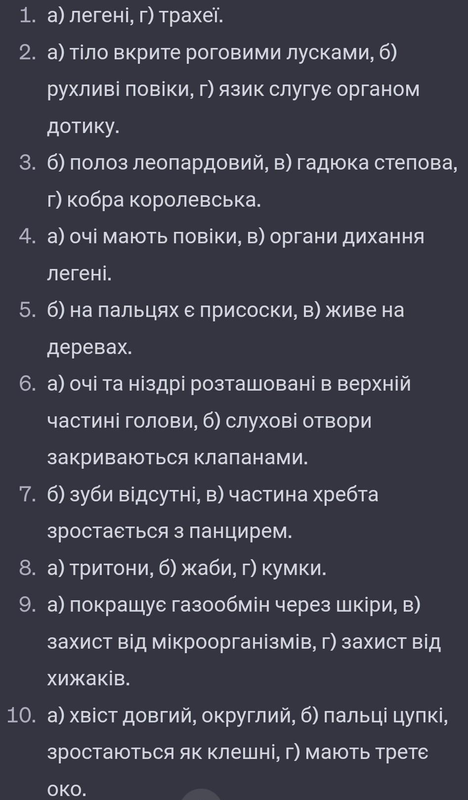 10. Вкажіть ознаки, за якими можна відрізнити від інших лускатих: