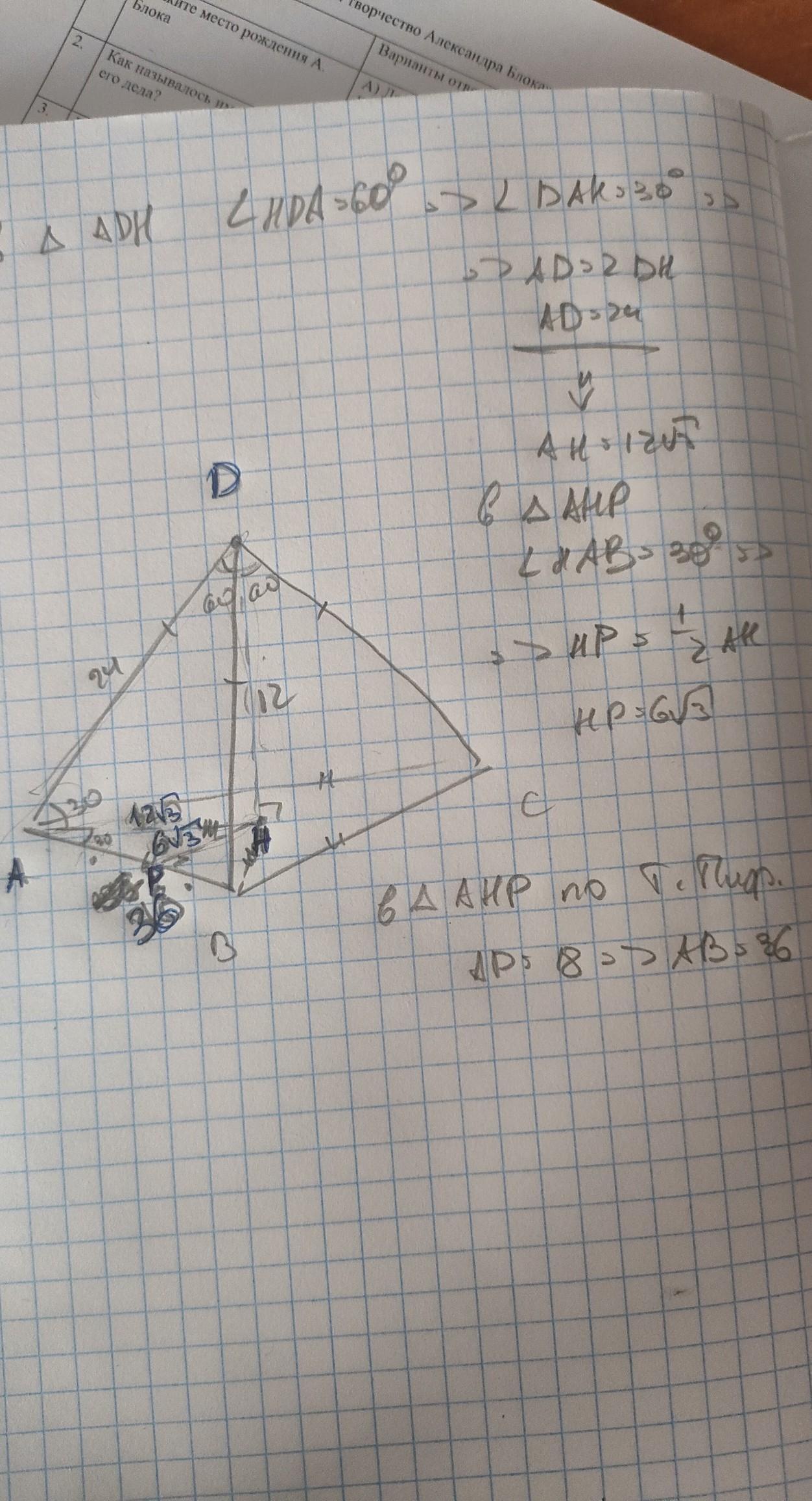 На чертеже. Используй теорему Пифагора и свойство катета, лежащего против угла в 30 градусов