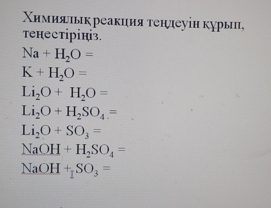 Химиялық реакция теңдеуін құрып, теңестiрiңiз.