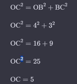 Мы можем использовать теорему Пифагора, чтобы найти длину ОС (гипотенузы):