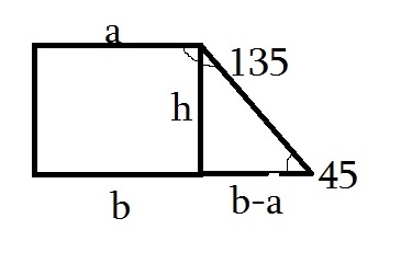 В прямоугольной трапеции один из углов равен 135˚º , средняя линия 18 см, а основания относятся как 1:8. Вычислите основания трапеции и её площадь.