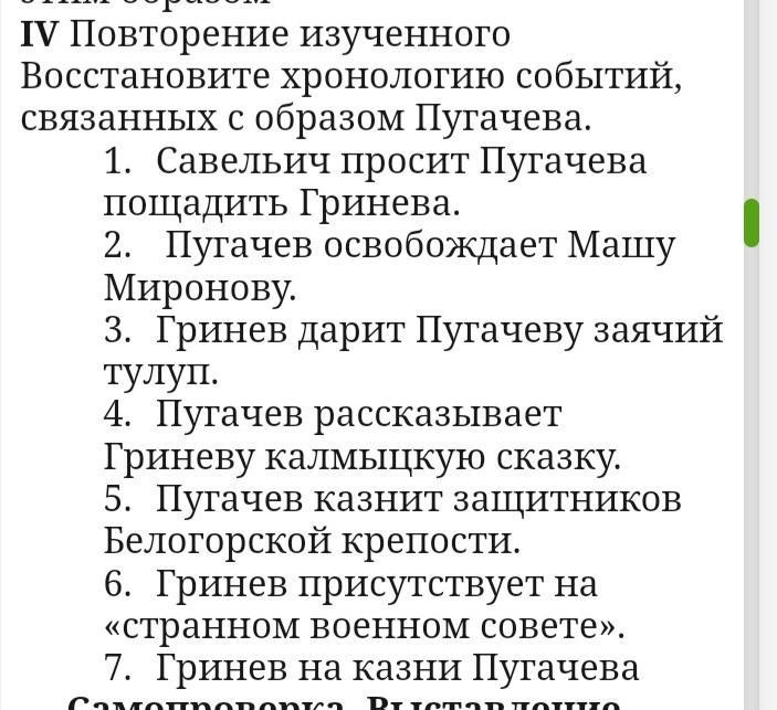 1. **Савельич просит Пугачева пощадить Гринева:** Это произошло в начале восстания Пугачева, когда Савельич, слуга капитана Гринева, умолял Пугачева сохранить жизнь своему господину.