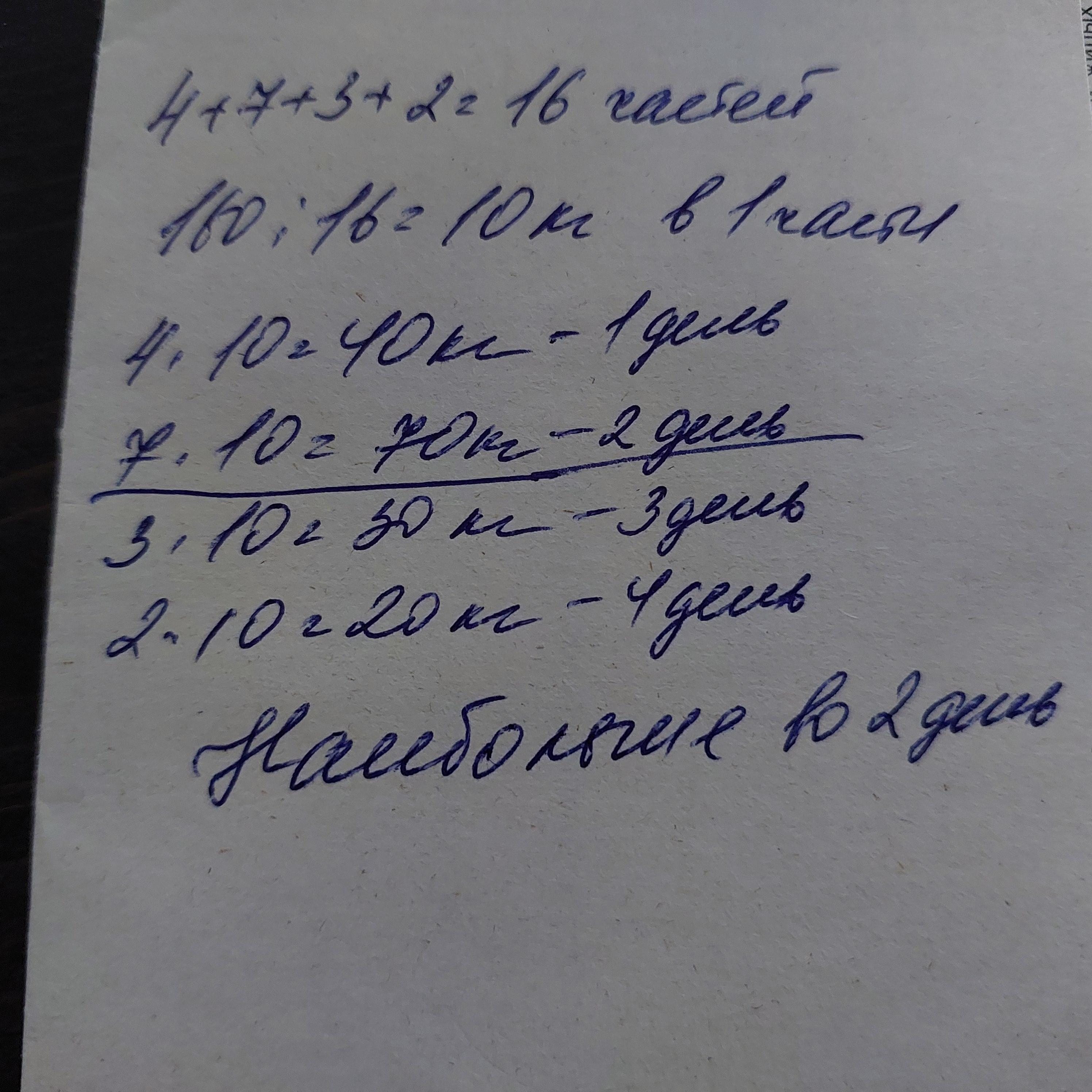 Запишіть розв'язання до задачі з поясненнями до кожної дії За чотири дні в магазині продали 1 60 кг помідорів у відношенні 4:7:3:2. У який день продали найбільше помідорів і скільки?