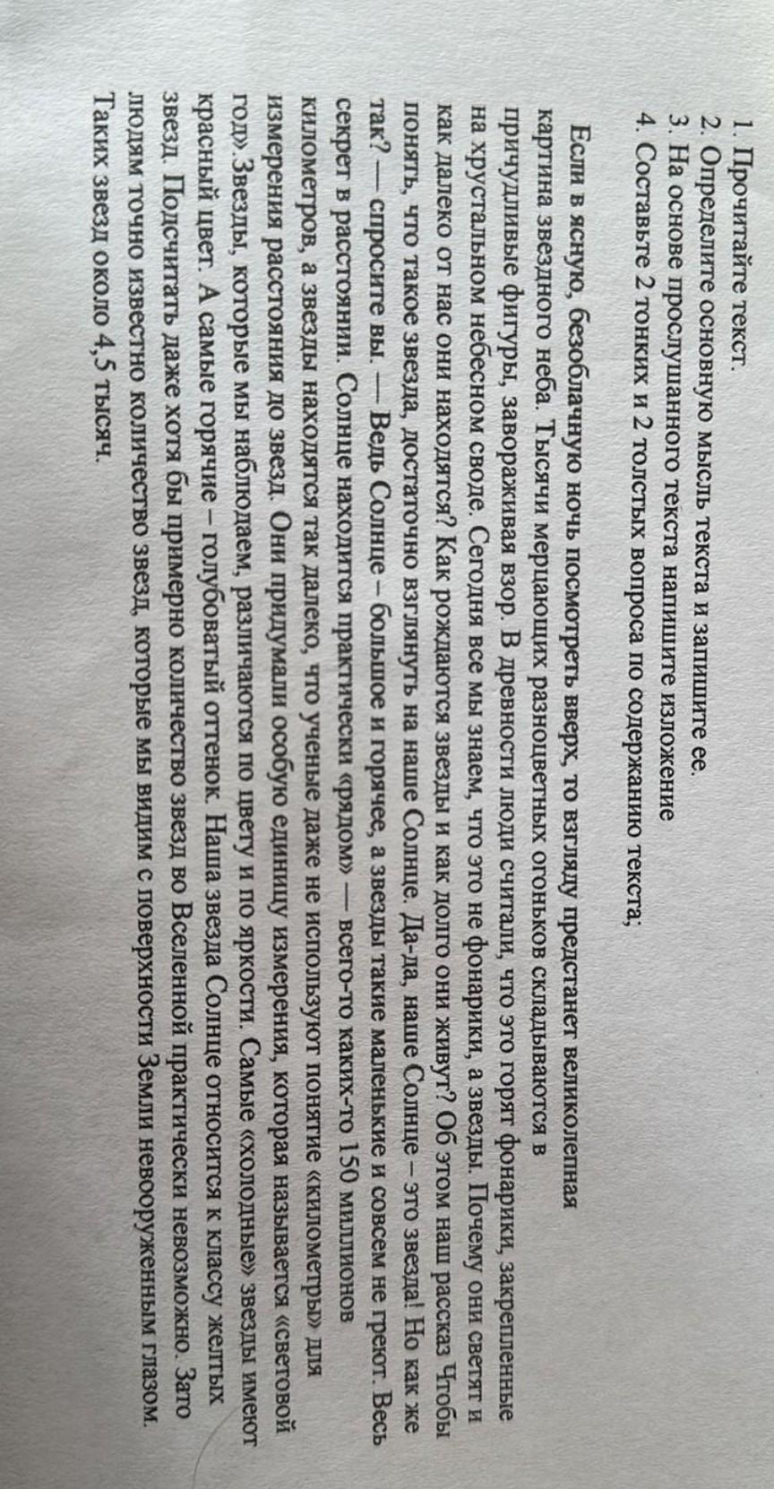 Основная мысль текста: Звездное небо представляет собой прекрасное и загадочное зрелище, вызывающее интерес у людей, которые задаются вопросами о происхождении, жизни и светимости звезд.