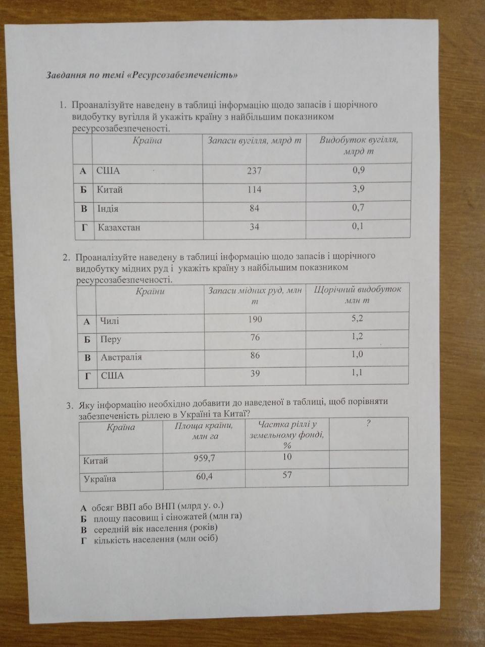 Б (Китай): Запаси - 114 млрд т, Видобуток - 3,9 млрд т