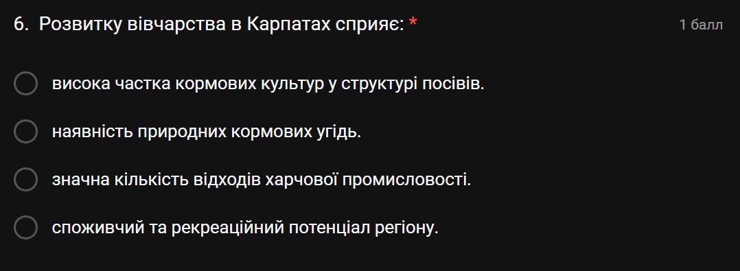 Відповідь:наявність природних кормових угідь.