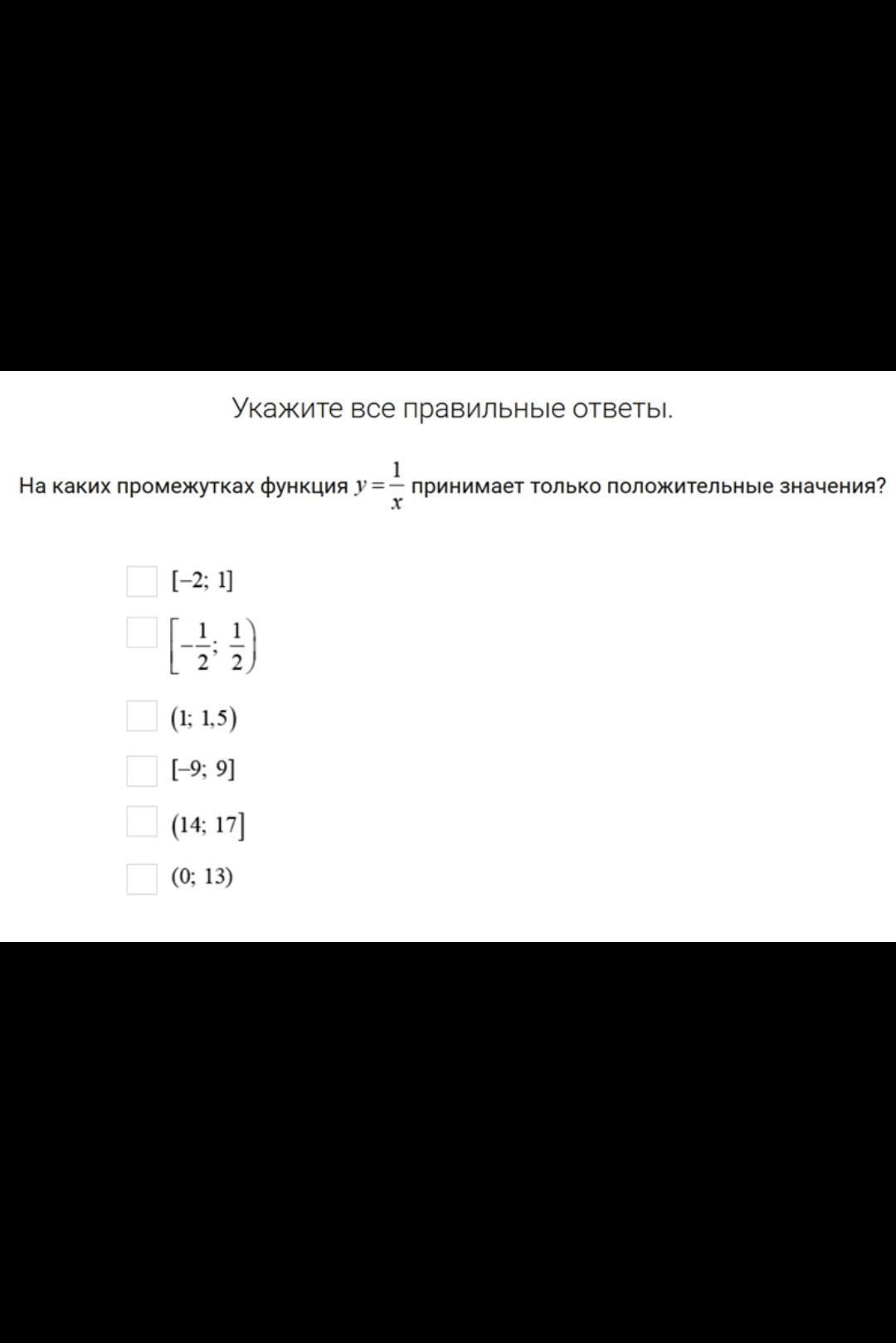 График функции - это гипербола в первой и третьей четверти. В первой четверти функция > 0. Следовательно, выбираем промежутки те, у которых границы положительны.