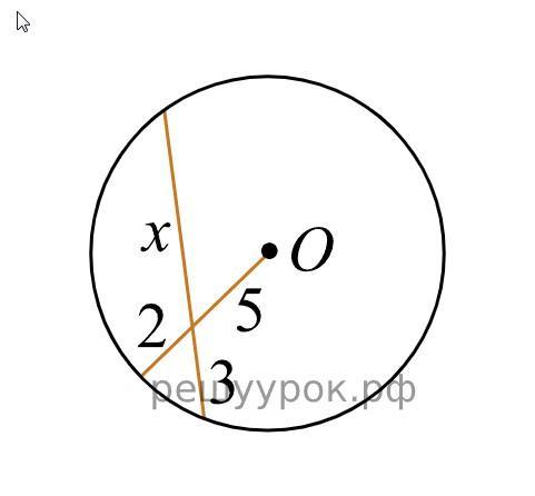 нужно просто "продлить" радиус до диаметра, и потом использовать свойство хорд окружности: 2*(5+7)=х*3
