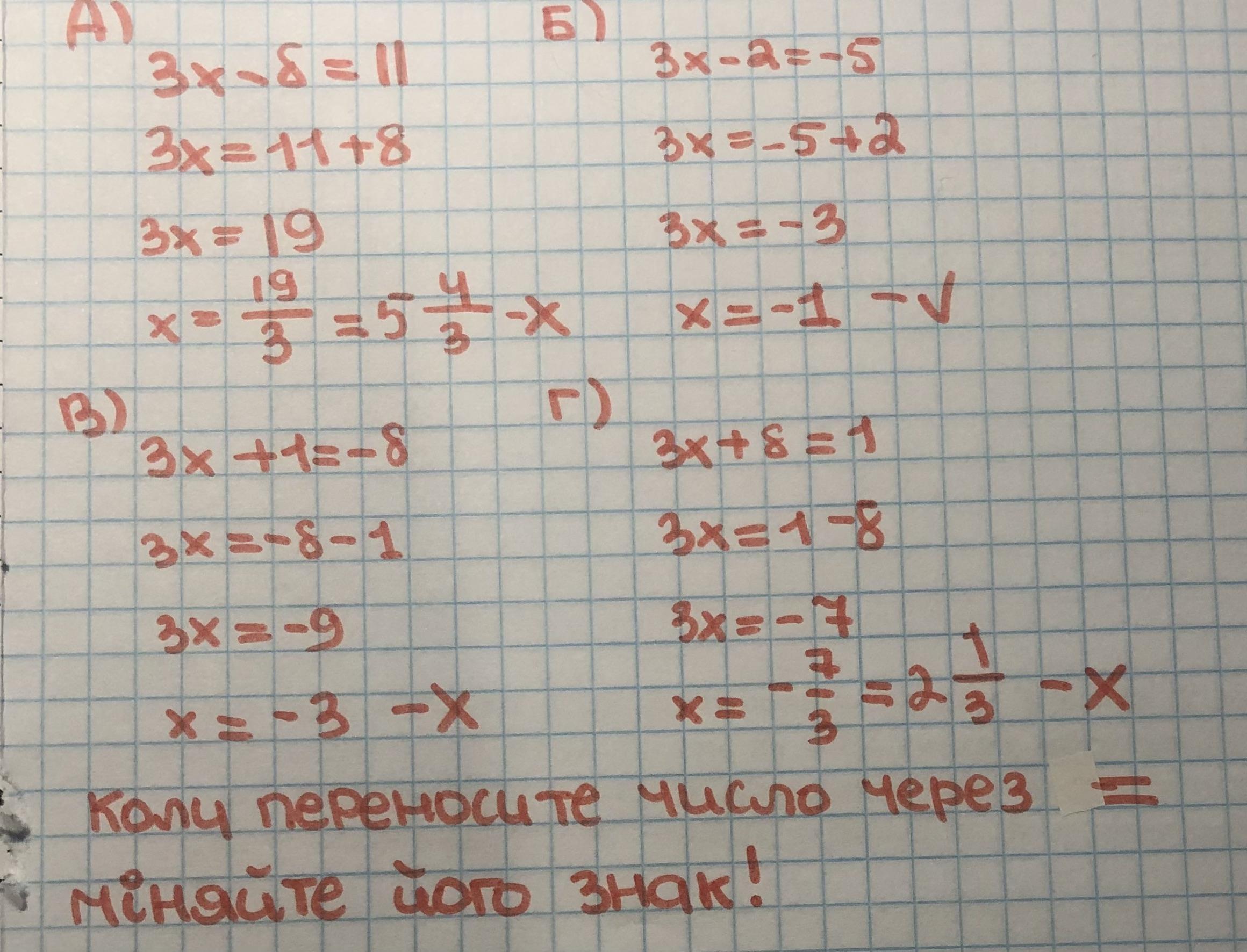 Б) 3х-2=-5