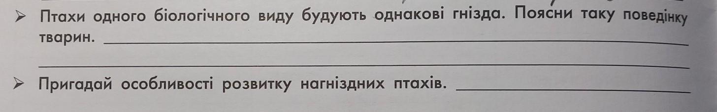 > Птахи одного біологічного виду будують однаковi гнiзда. Поясни таку поведінку тварин. Пригадай особливості розвитку нагнiздних птахів.будь ласка швидко дам 100 балів