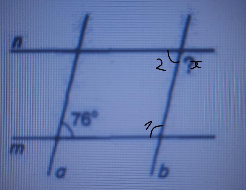 ∠1 + ∠76° = 180° - за наслідком 2 : якщо при перетині двох прямих січною сумма внутрішніх односторонніх кутів дорівнює 180°, то прямі паралельні, - звідци: при перетині двох паралельних прямих січною сума внутрішніх односторонніх кутів дорівнює 180°