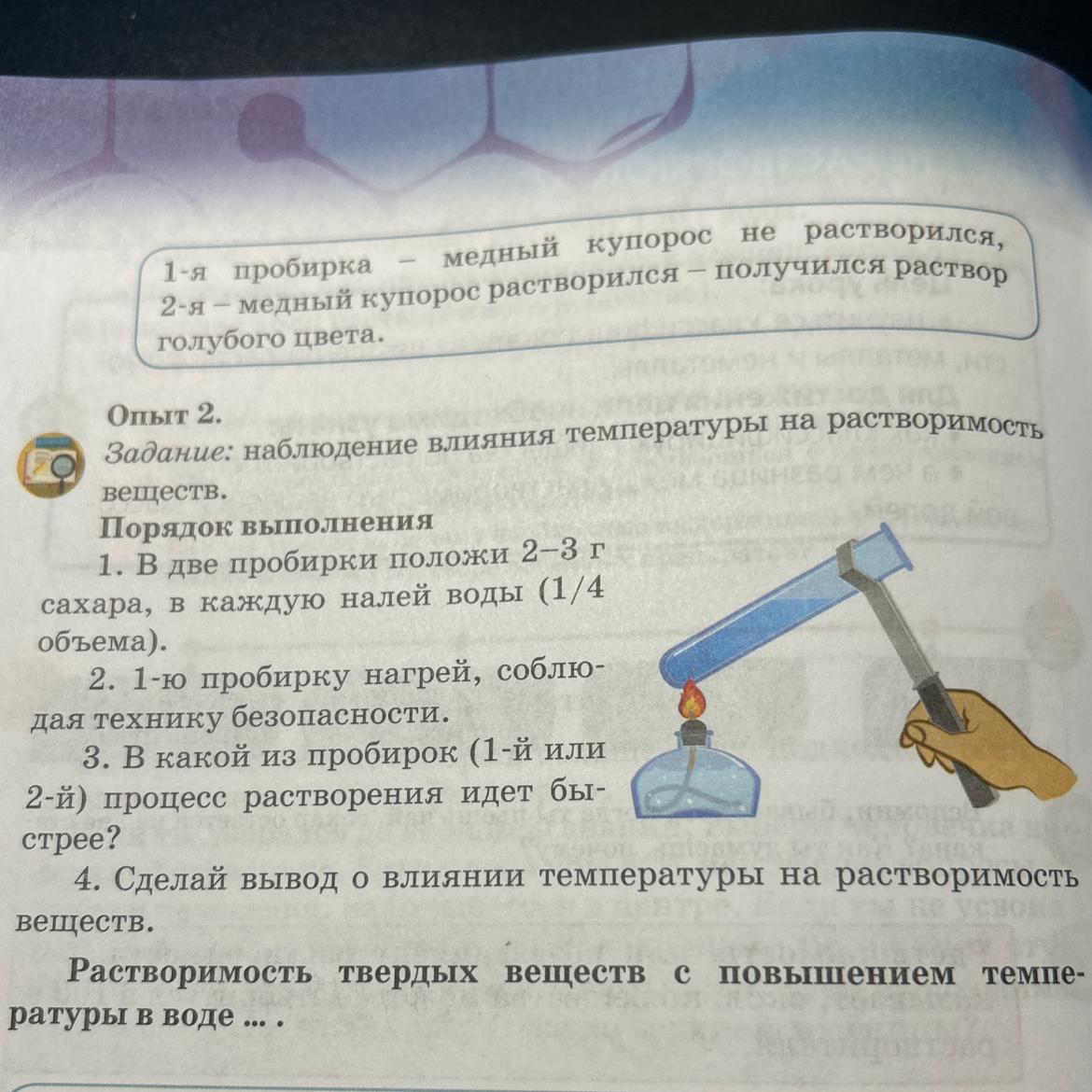 Задание: наблюдение влияния температуры на растворимость