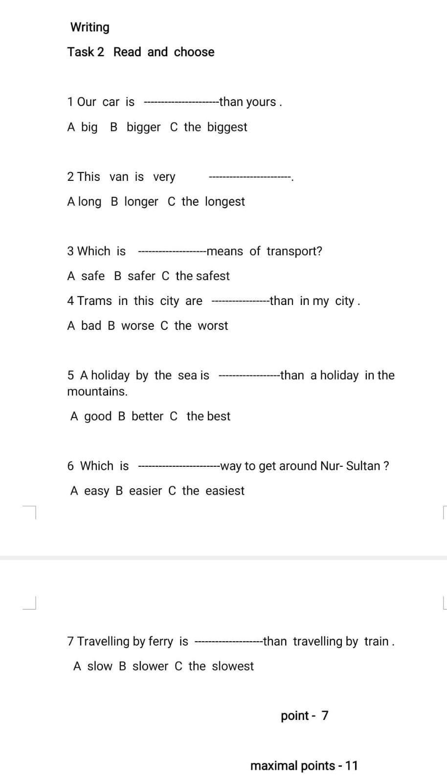 4. Trams in this city are **C** the worst means of transport than in my city.