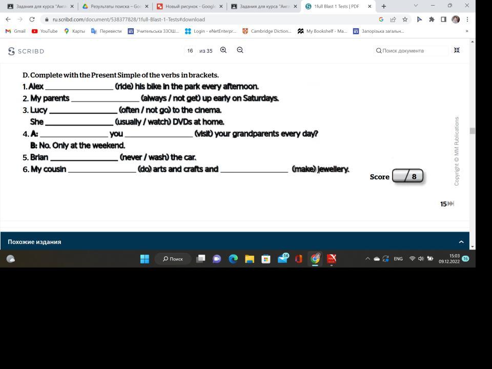 Пояснення:D: Alex rides his bike in the park every afternoon.