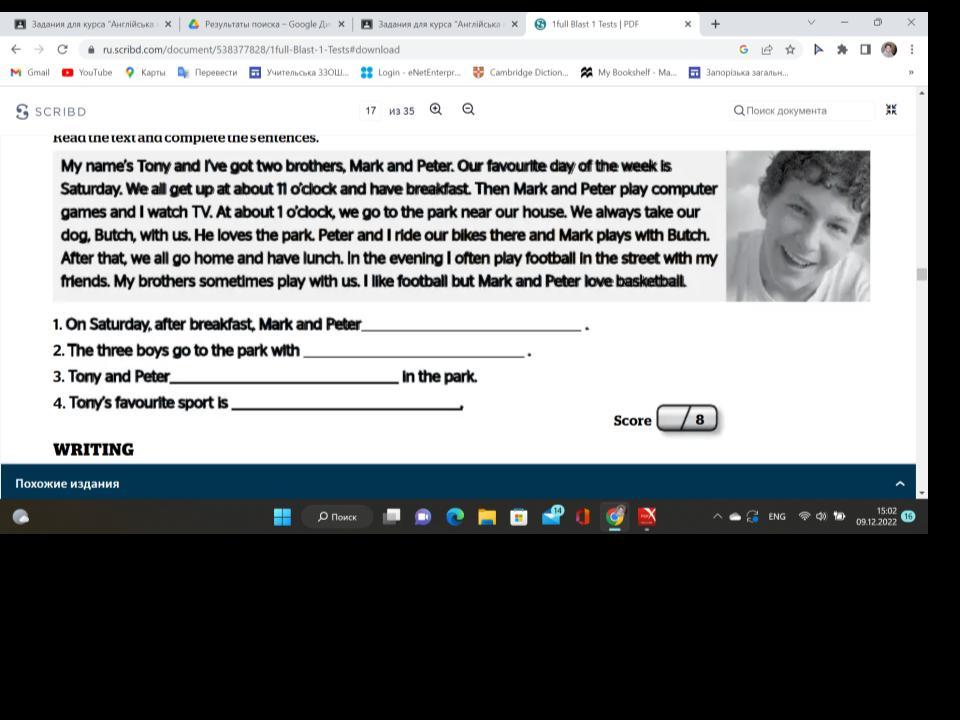 1.On Saturday, after breakfast, Mark and Peter play computer games.