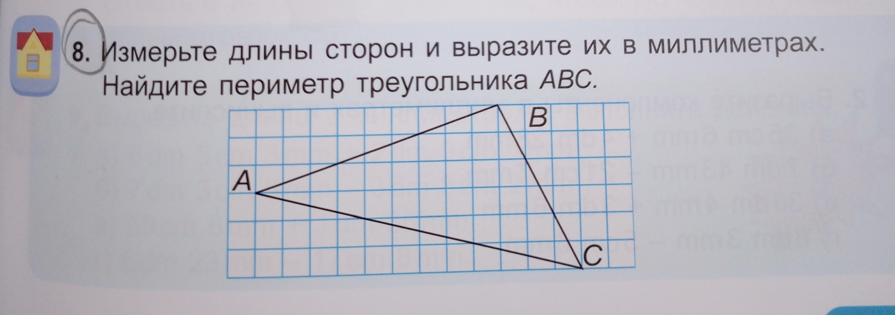 Измерьте длинны сторон и выразите их в миллиметрах найдите периметр треугольника abc