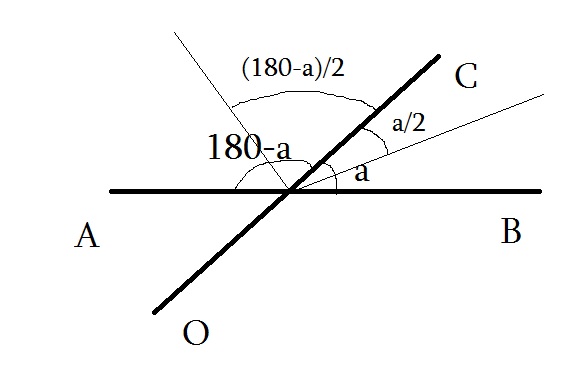 точка о лежит на прямой ав ,ос -произвольный луч. какой угол образуют биссектрисы углов аос и вос? 1.острый