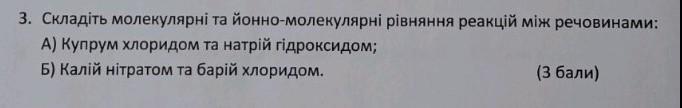 3. Складіть молекулярні та йонно-молекулярні рівняння реакцій між речовинами:
