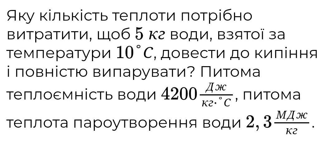 = 5 * (4200*(100-10) + 2.3*10^6) = = 13.4 *10^6 Дж = 13,4 МДж