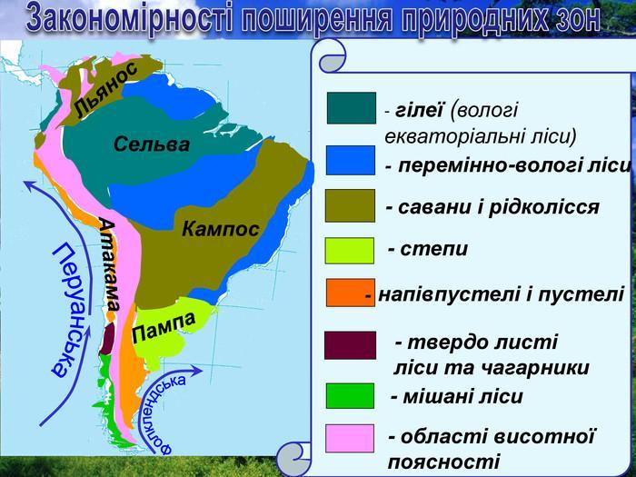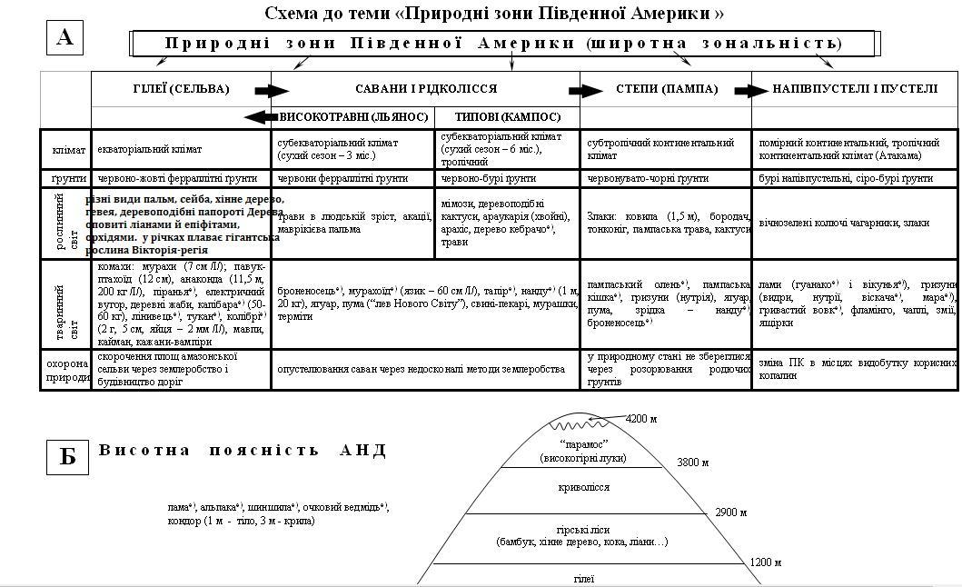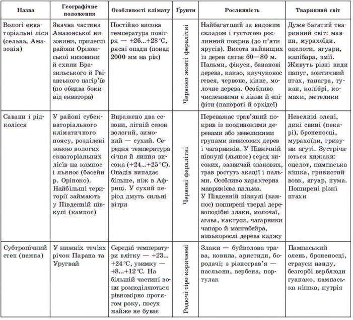 За допомогою карт атласу скласти таблицю "Характеристика природних зон Південної Америки"