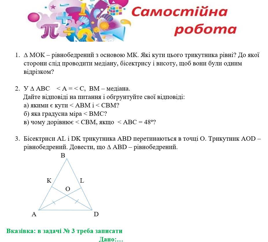 1. кутМ=кутК як кути при основі рівнобедренного трикутника
