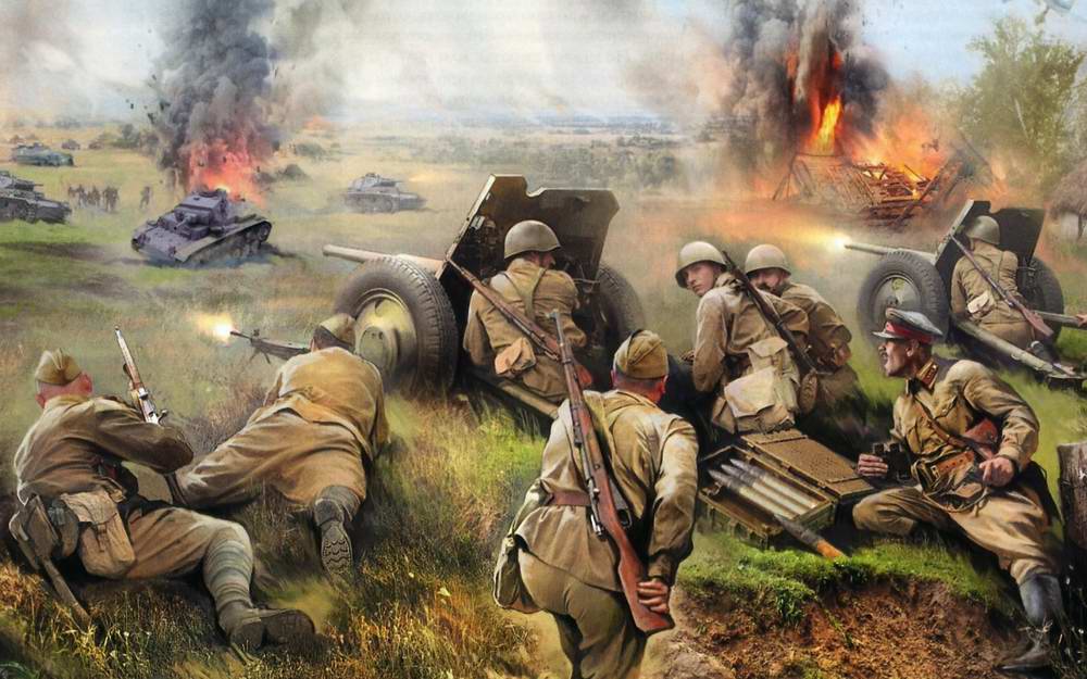 на данной картине изображается момент мужественной схватки патриотов родины против фашистских оккупантов. эти бойцы за свободу отчизны и благополучие своих потомков отважно сражаются против врага. кругом горят танки, взрываются снаряды, гибнут товарищи, но не смотря ни на что, до последней капли крови отчаянно сопротивляются недругам. война-это неоправданное убийство тысяч или даже миллионов людей. поэтому нашему поколению необходимо сделать все, для того, чтобы не развязать новую войну и предотвратить появление новых жертв