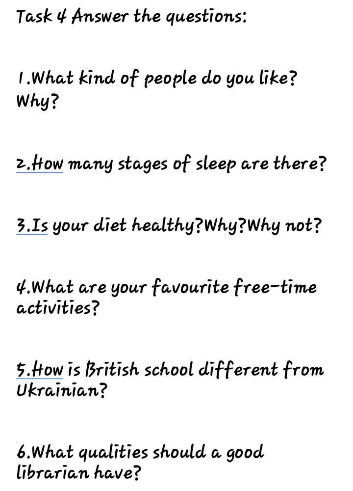 5. They have a big difference because British schools have more control at pupils, they have to wear school uniform and there are a lot of other rules that they need to observe. Schools in Ukraine usually not so strict.
