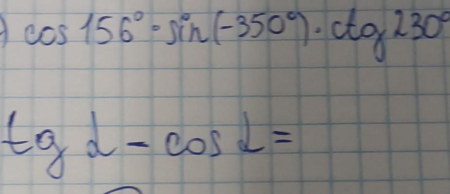 cos156° · sin(-350°) · ctg230° = (-)·(+)·(+) = -