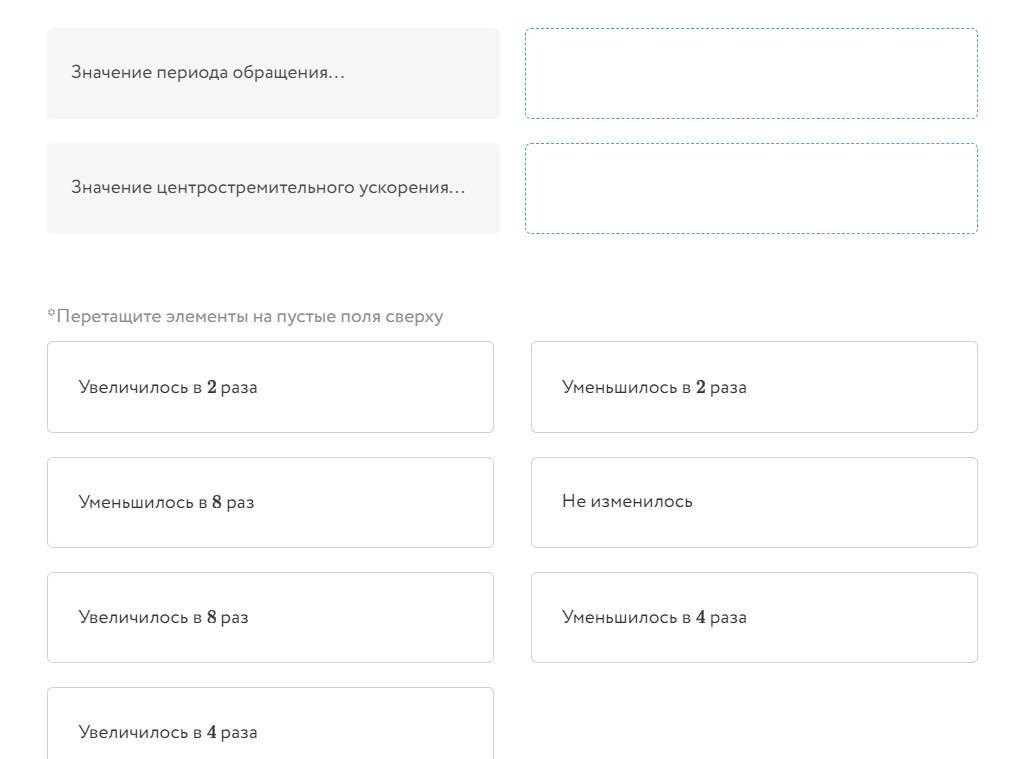Радиус движения тела по окружности и его линейную скорость увеличили в 4 раза. Как при этом изменились значения периода обращения тела по окружности и его центростремительного ускорения?