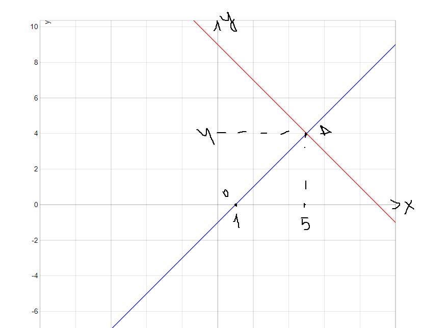 График в файле ( точка пересечения А (5; 4) и есть решение)