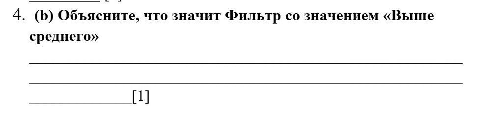 4. (b) Объясните, что значит Фильтр со значением «Выше среднего» ___________________________________________________________________________________________________________________________[1]Помогите пожалуйста лам 100 балов