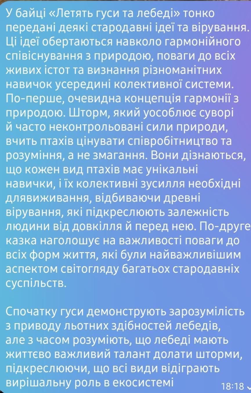 Проаналізуйте, які стародавні уявлення і вірування нашого народу передано у повісті "Гуси-лебеді летять"». (твір 15-20 речень). Дам 30 балов
