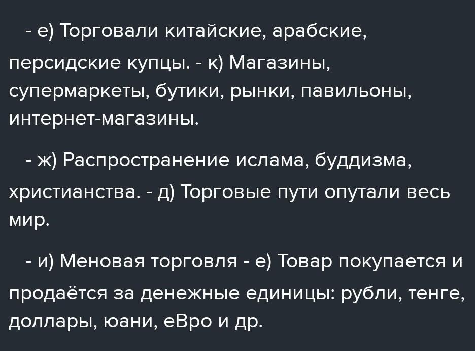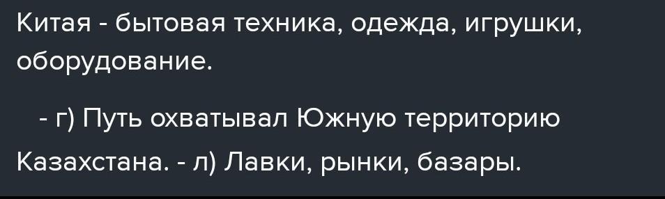 - г) Путь охватывал Южную территорию Казахстана. - л) Лавки, рынки, базары.