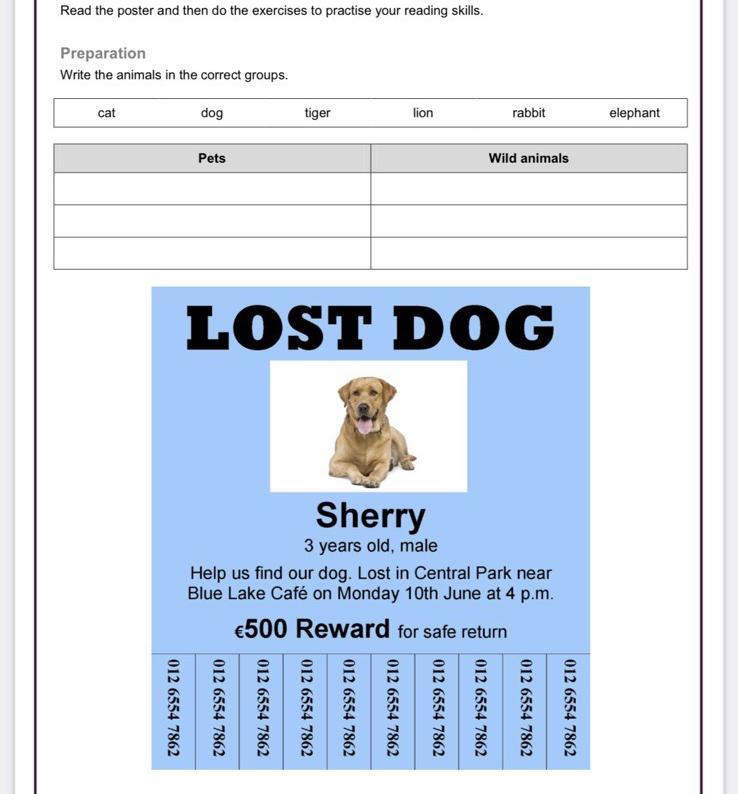 Reading skills practice: A lost dog - exercises
