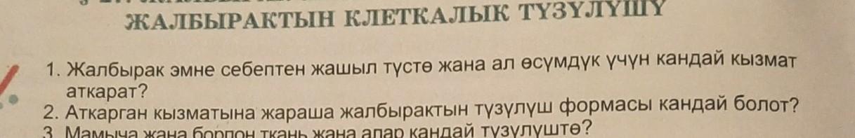 2. Аткарган кызматына жараша жалбырактын тузулуш формасы кандай болот? 15 баллов