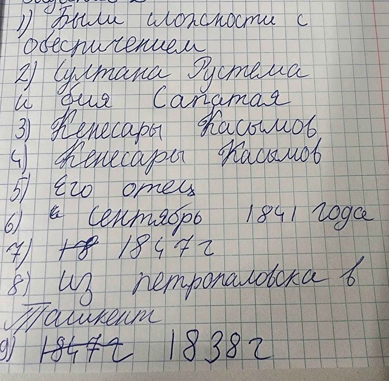Вопросы. 1. Хан Кенесары Касымулы поощрял развитие земледелия, потому что 2. Последнее сражение Кенесары состоялось в местечке Майтобе, недалеко от города Токмак, накануне Кенесары оставили воины 3. В своих письмах императору России в 20–30-х гг. XIX в. он требовал не менять политического строя казахов, отменить законы, введенные вопреки желанию казахов. 4. Возглавил национально-освободительное движение казахских родов за сохранение независимости от Российской империи в 1837–1847 годах 5. Сражение в ночь с 20 на 21 июля 1844 года завершилось победой Кенесары и разгромом отряда султана Жантореулы, этом сражении погибли выступившие вместе с группой карателей 6. Большое влияние на взгляды султана Кенесары оказал 7. Восставшие избрали Кенесары ханом 8.Хан Кенесары вторгся в киргизские земли