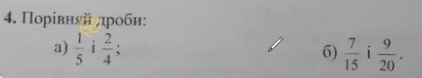 1/5 = 4/20; 2/4 = 10/20; 4/20<10/20; 1/5<2/4