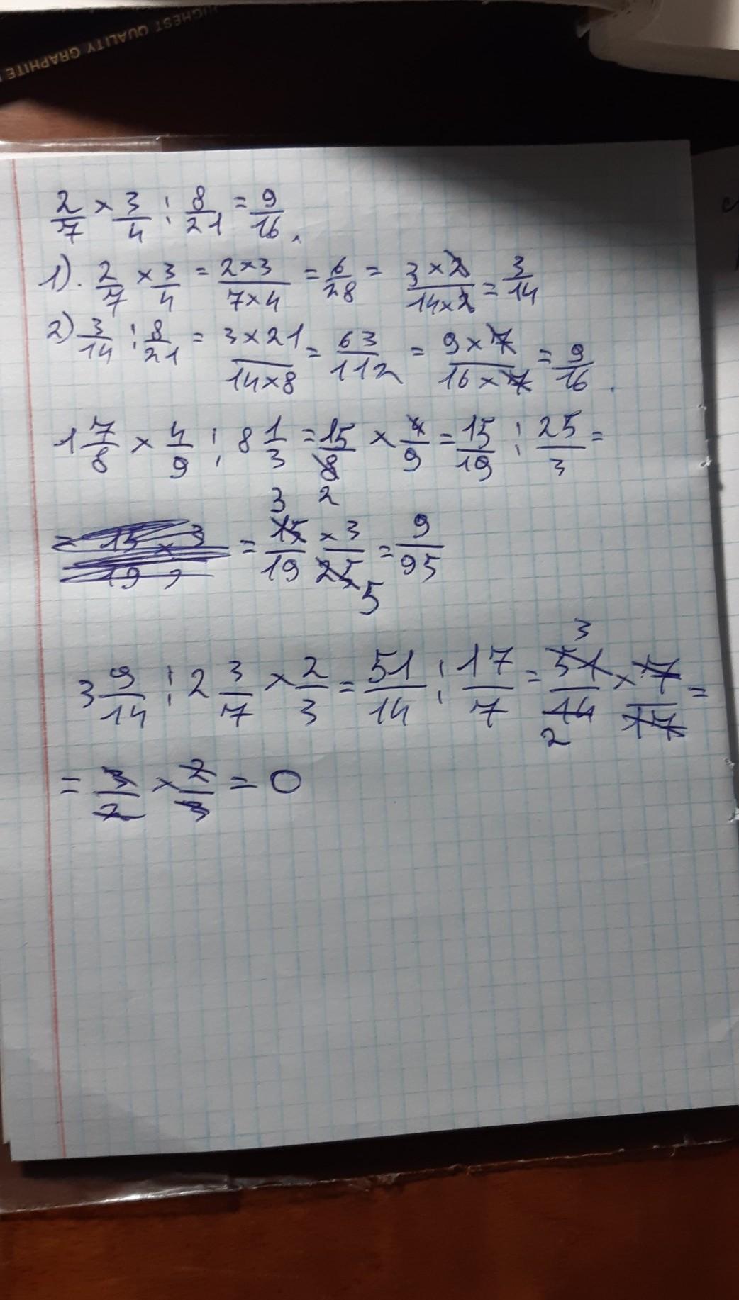 2/7•3/4•21/8=2•3•21/7•4•8=126/224:скоращаем и получается=0,5625