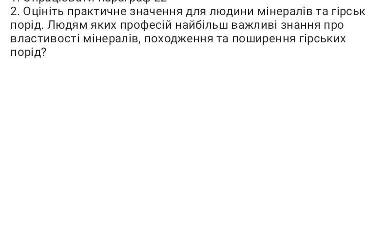 Оцініть практичне значення для людини мінералів та гірських порід. Людям яких професій найбільш важливі знання про властивості мінералів, походження та поширення гірських порід? Дам 60 балов