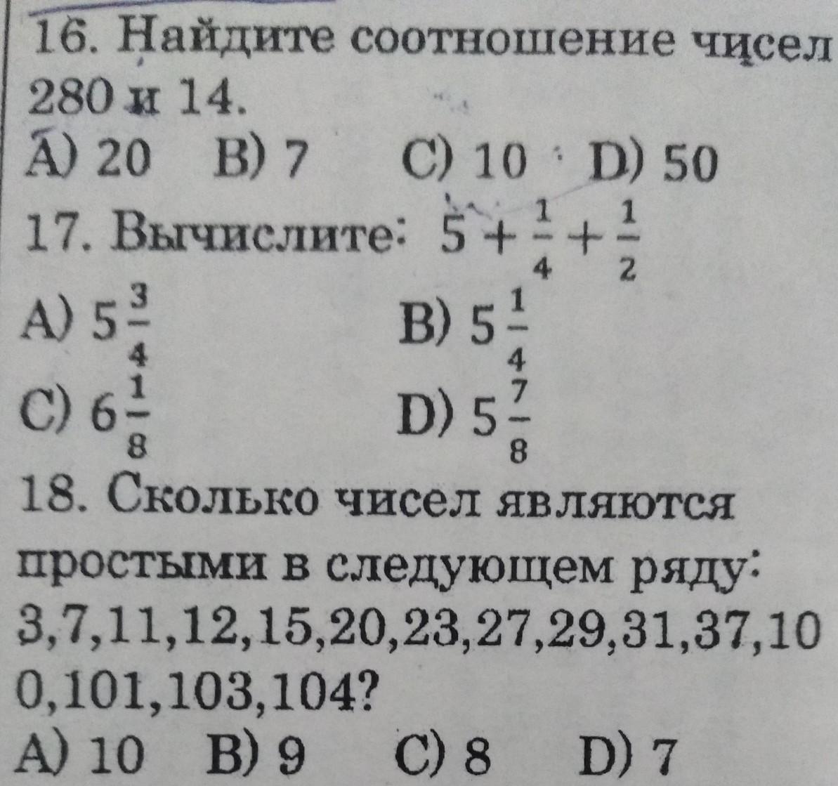 17)А). 5+1/4+1/2 (1/2 умножаем на два чтобы был общий знаменатель.)