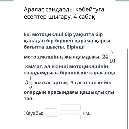 мотоциклшінің жылдамдығы 24 10