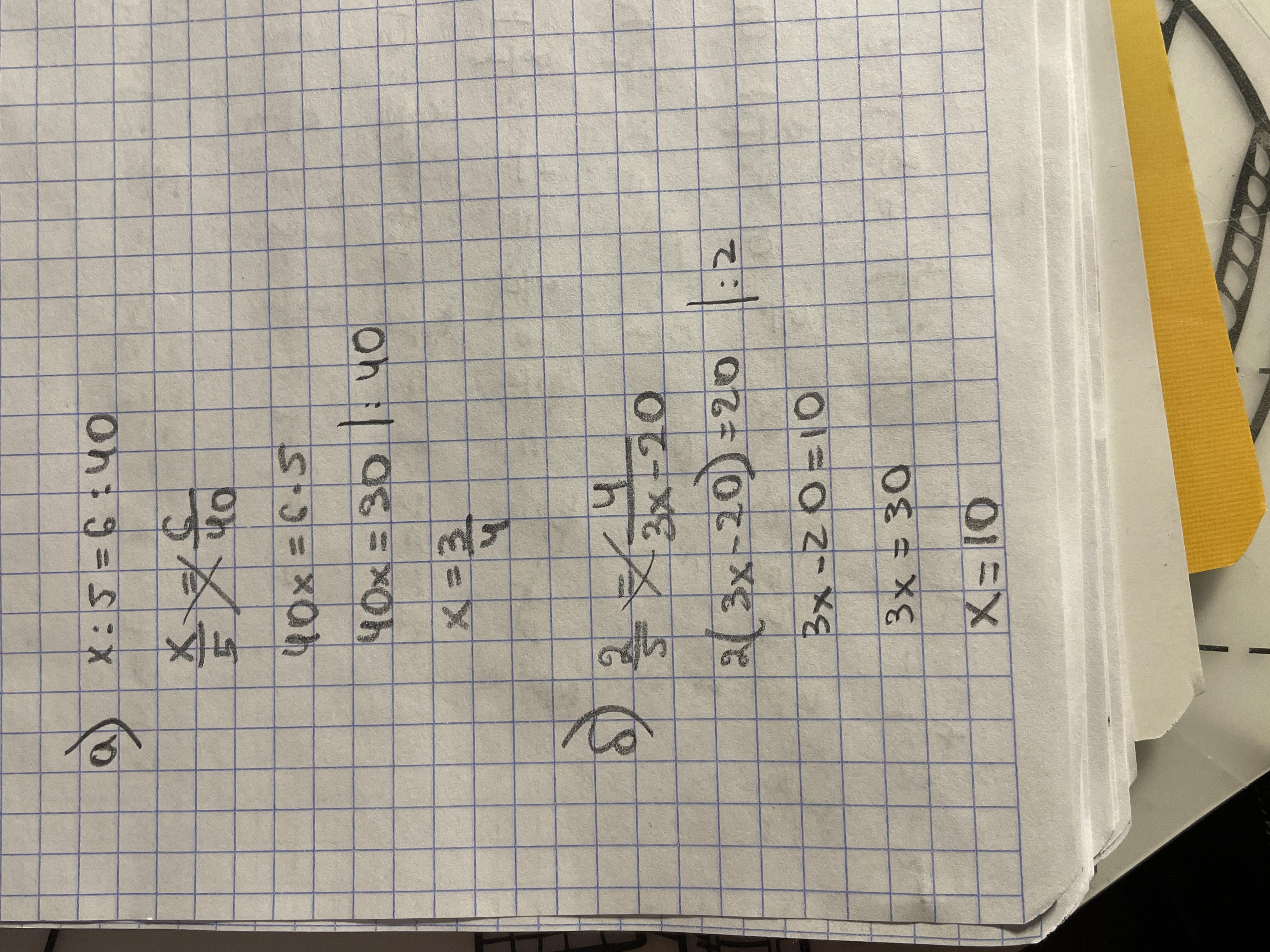 а) x:5=6:40