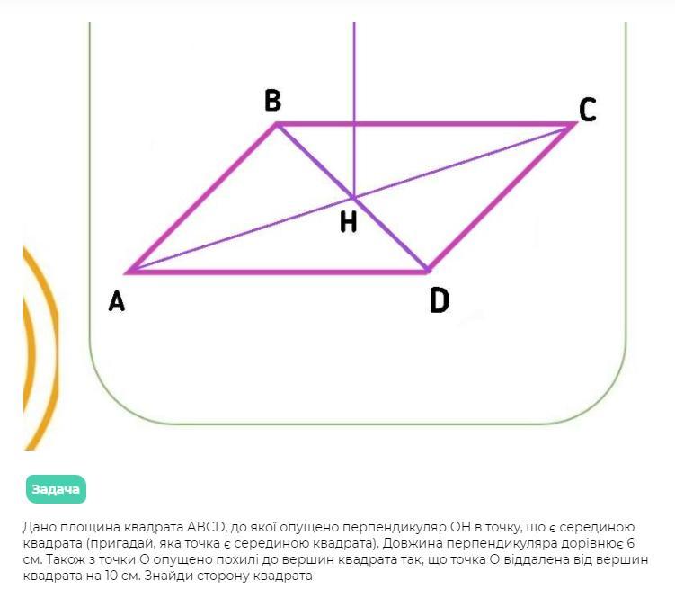 НС=√(ОС²-ОН²)=√(10²-6²)=8см.