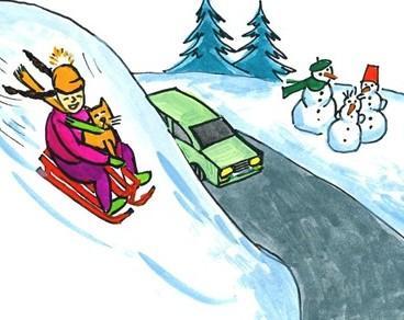 Был снежный день.Земля укутанная снегом ,зимняя атмосфера, снеговики,что может быть лучше? По дорогам проезжают машины ,везде ребята построили чудесных снеговиков,которые явно принесли им много радости.Зима это время когда можно играть в разные игры на льду,по снегу,которые невозможно поиграть в другие времена года.Видно что на небольшой снежной горке на санках катается девочка,а рядом с ней ее кот.Сразу понятно что им очень весело.Все же зима хоть и одно из самый холодных времен года,но и одно из самых волшебных и красивых.